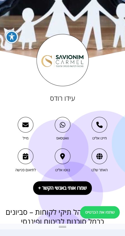 כרטיס ביקור דיגיטלי משולב דף נחיתה