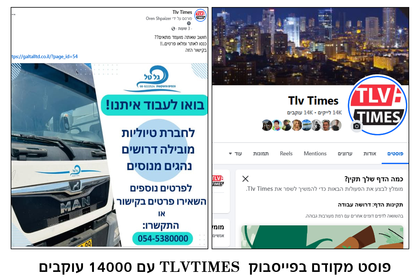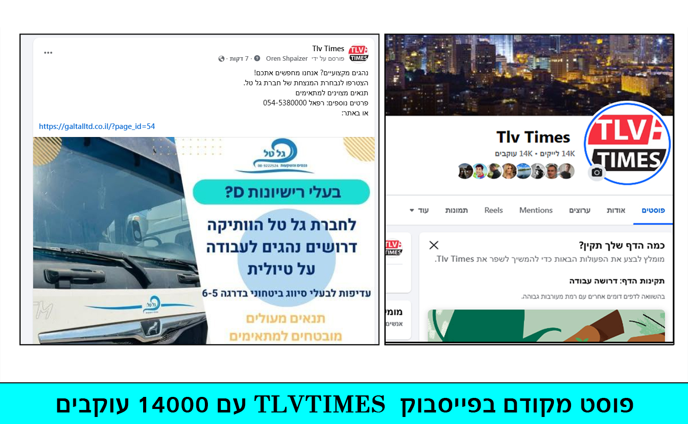 פרסום פייסבוק TLV TIMES - חיפוש נהגים