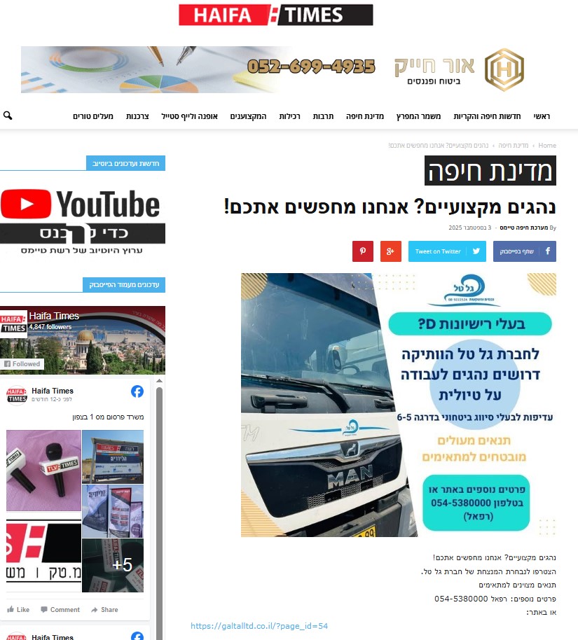 מודעת דרושים נהגים מפורסם ברשת טיימס